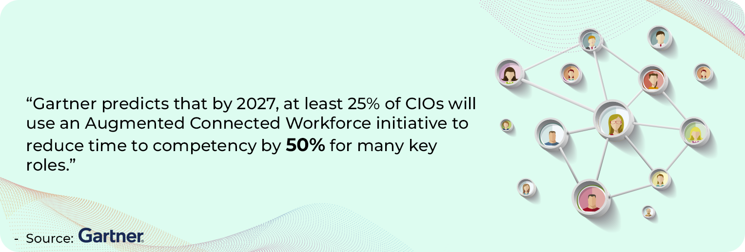 “Gartner predicts that by 2027, at least 25% of CIOs will use an Augmented Connected Workforce initiative to reduce time to competency by 50% for many key roles.”