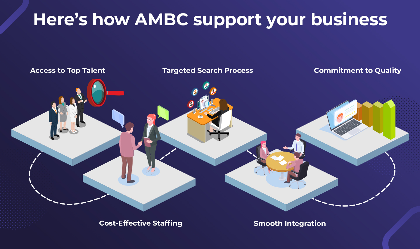 With AMBC, you get reliable IT professionals who boost your team’s capabilities and help you stay on track with your projects.